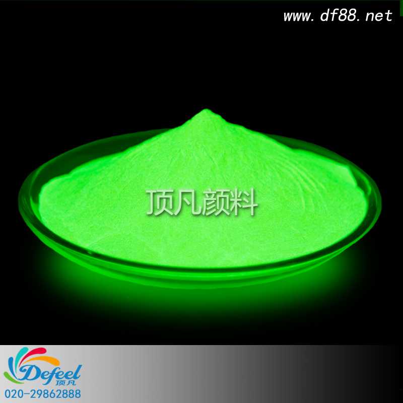 黃綠短效夜光粉先吸收各種光和熱,轉換成光能儲存,然后在黑暗中自動發光,并可無限次數循環使用,對陽光及紫外光有較快的吸收效果。是一種添加顏料,用于各種透明或半透明介質中,如塑料涂料釉料油墨玻璃化學纖維樹脂,制備發光制品。